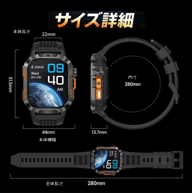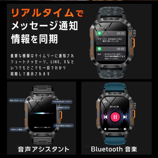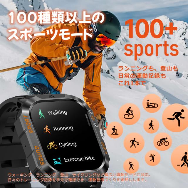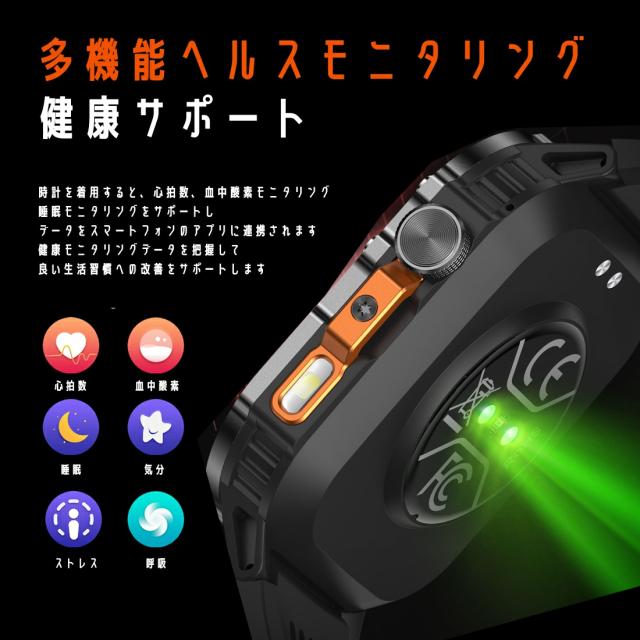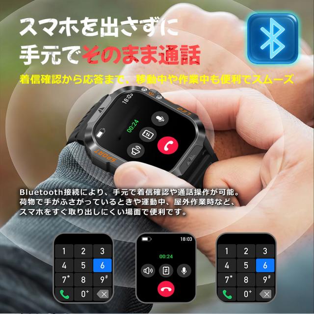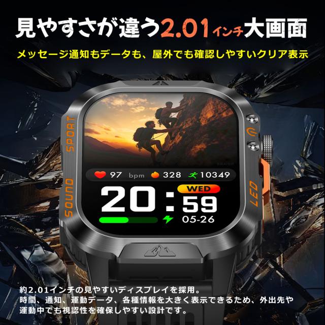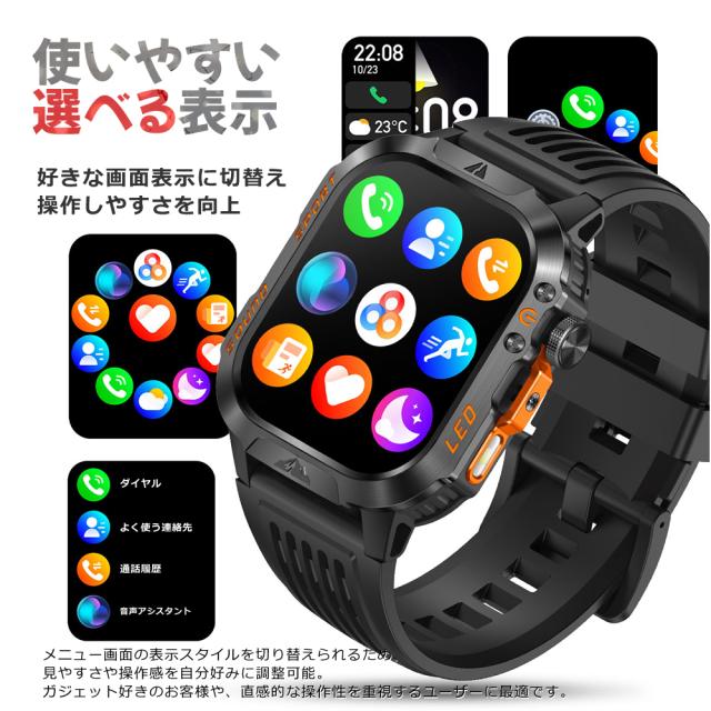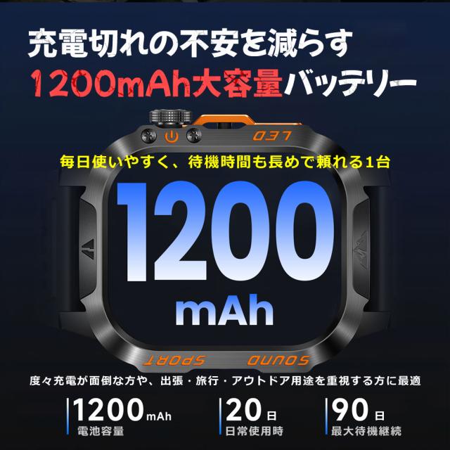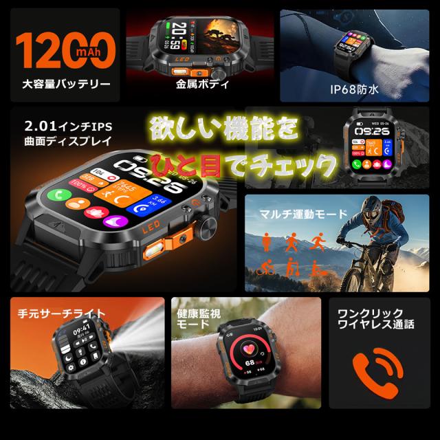【1200mAh大容量バッテリー 】スマートウォッチ 技適認証 通話機能付き 男女通用 2.01インチ大画面 心拍数 LINE着信通知 VER5.2 IP67防水 健康管理 血中酸素濃度 睡眠モニター 運動記録 レディース メンズ