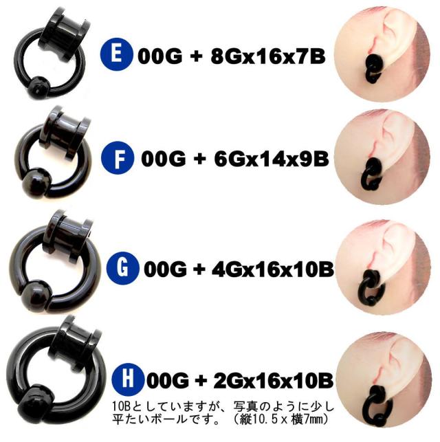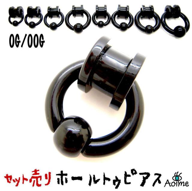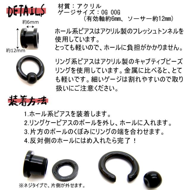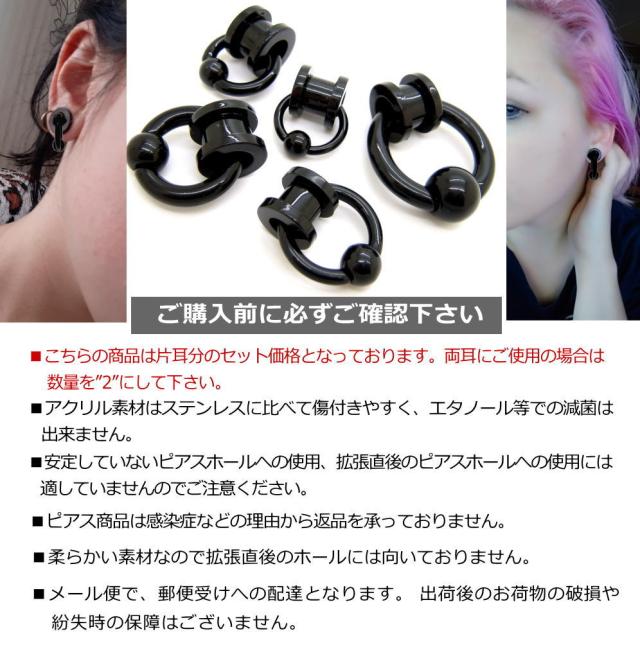 ホールトゥピアス ボディピアス フレッシュトンネル ビーズリング 0G 00G アクリル ブラック 黒ピアス 軽い uv5--