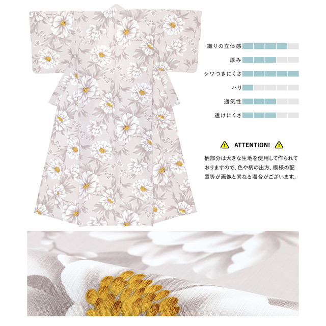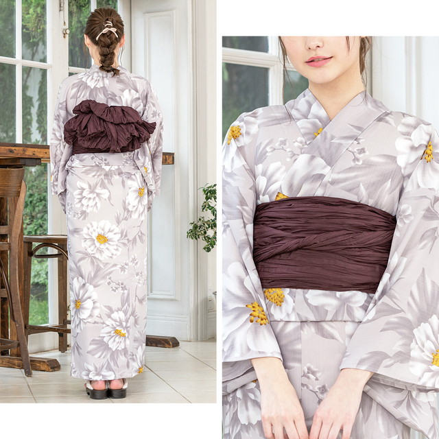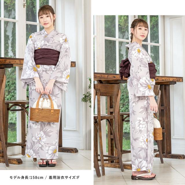 浴衣セット レディース フェミニン 浴衣セット 大人 3点セット グレー系 灰色系 白 ボルドー 牡丹 花 大柄 変わり織り 女性 夏 S・フリー