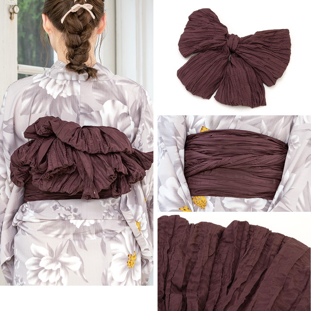帯は、体に巻いて後ろで結ぶタイプの兵児帯です。