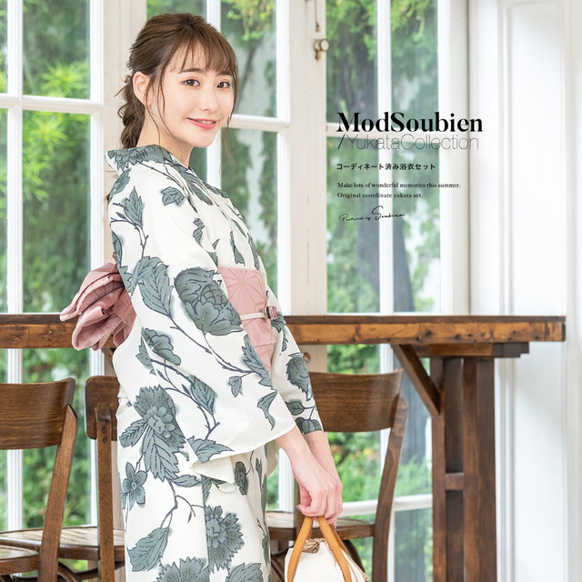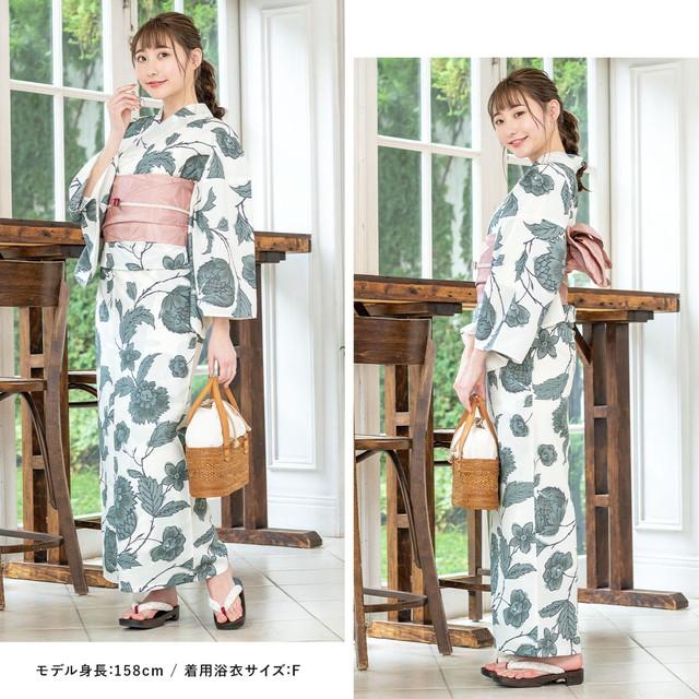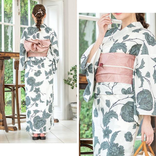 浴衣セット レディース 浴衣セット 大人 3点セット ホワイト 白 グレー 灰色 牡丹 ダリア 花唐草 モダン 変わり織り 夏祭り 花火大会 女性用 S・フリー