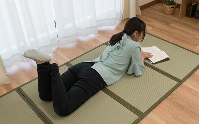 コンパクトでサッと敷けるので、ラグやごろ寝マット代わりにも。少しだけごろんとしたくなった時のリラックススペースとしてはもちろん、防音や衝撃吸収の効果もあるため子どもの遊びスペースやお昼寝マットとしてもおすすめ。
