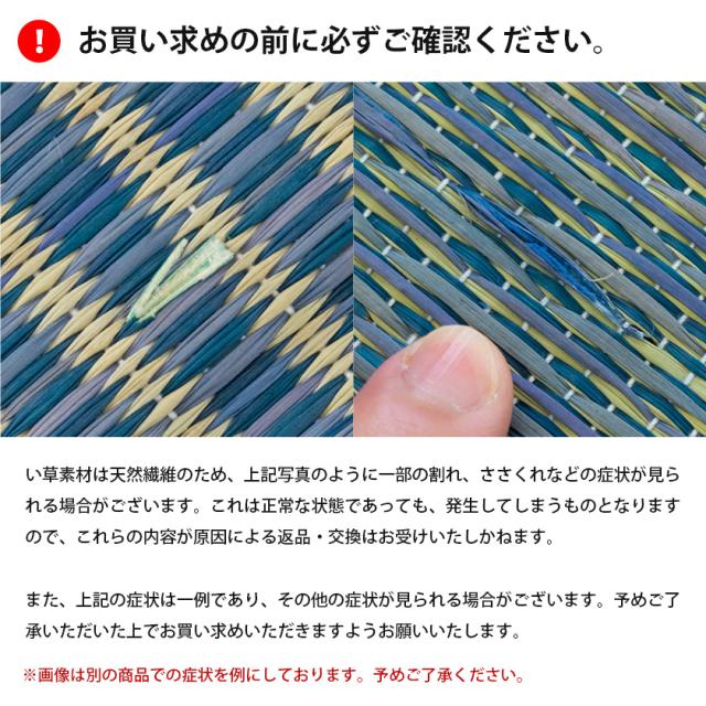 | 組成 | 表面:い草 裏面:不織布・エンボススリップ (ポリエステル100%・塩化ビニル樹脂) 中身:フェルト |