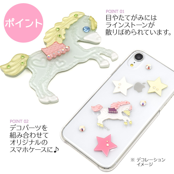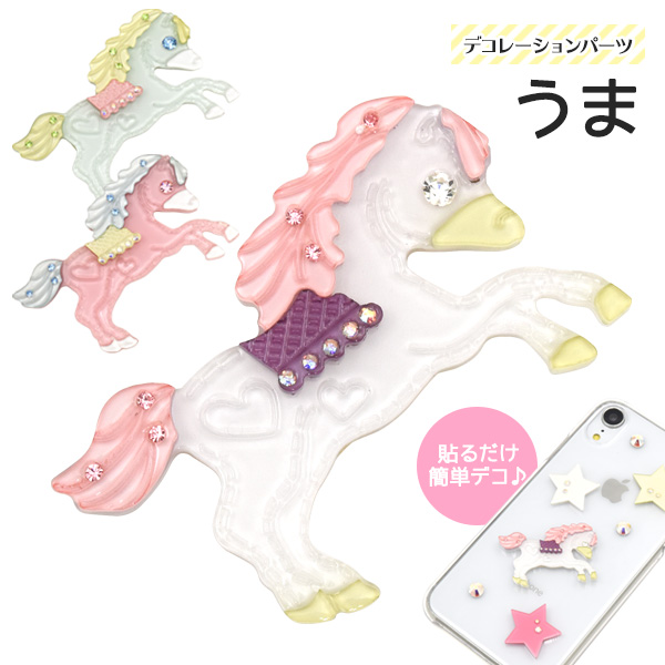 デコパーツ うま 両面テープ付き ラインストーン付き 馬 DIY素材 メルヘン デコレーションパーツ 手作り 自作 素材