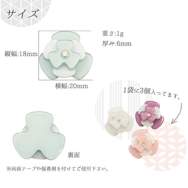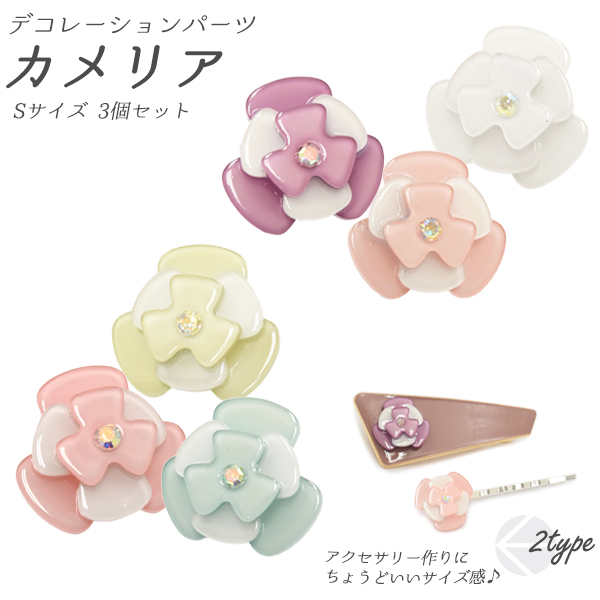 デコパーツ カメリア Sサイズ3個セット 可愛い オリジナルグッズ作成に DIY素材 デコレーションパーツ 手作り 自作 素材