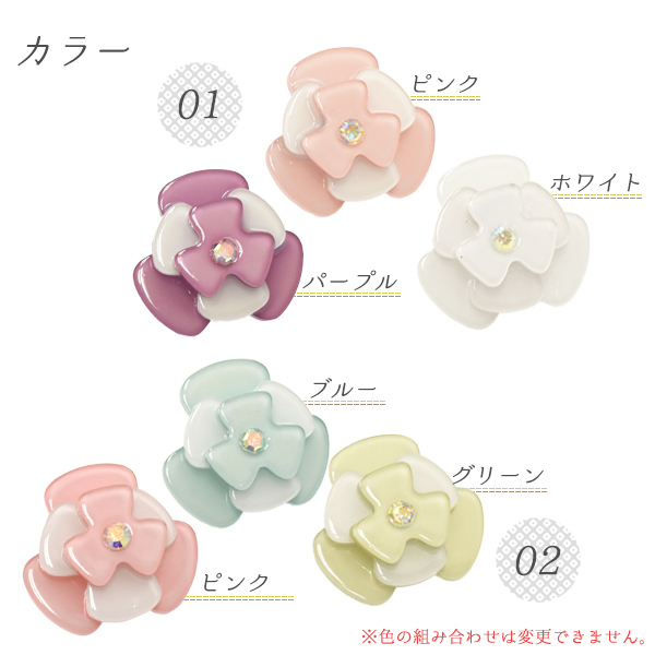 カメリアが3つ入ったデコパーツで2種類の組み合わせからお選び頂けます。