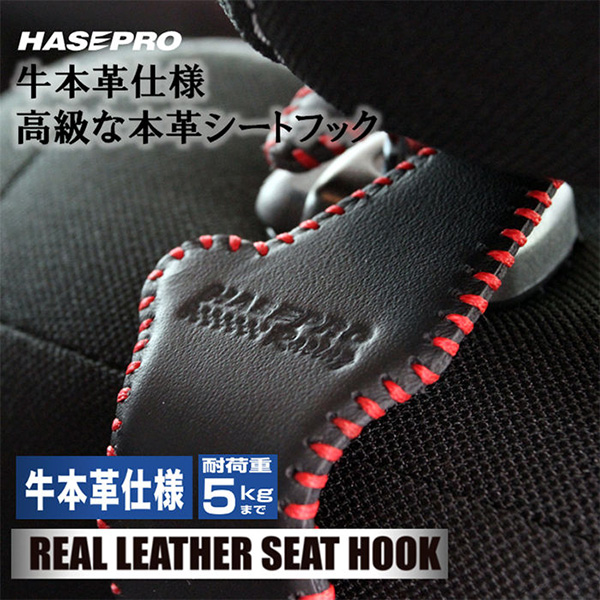 ハセプロ 本革シートフック レッド 耐荷重5kg ヘッドレスト取付 荷物かけ 収納 便利 HSH-1RED