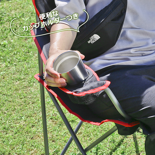 広げるだけで手軽に使える、ドリンクホルダー付きのラウンジチェア。