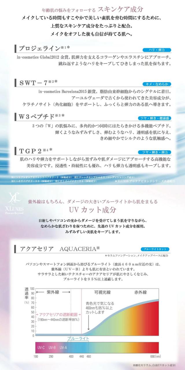 水、シクロペンタシロキサン、グリセリン、メトキシケイヒ酸エチルヘキシル、酸化チタン、BG、トリエチルヘキサノイン、セチルPEG/PPG-10/1ジメチコン、ラウリルPEG-9ポリジメチルシロキシエチルジメチコン、ジステアルジモニウムヘクトライト、ヒト脂肪細胞順化培養液エキス、カプリロイルジペプチド-17、ヒアルロン酸アスコルビルプロピル、アセチルヘキサペプチド-8、トリフルオロアセチルトリペプチド-2、クロクスクリサンツス根エキス、オリゴペプチド-68、ビブリオアルギノリチクス培養液、オリゴペプチド-34、ブルビネフルテスセンス葉汁、酸化セリウム、白金、合成フルオロフロゴパイト、酸化スズ、マイカ、シリカ、ダイヤモンド末、セラミドEOP、セラミドNG、セラミドAP、セラミドNP、フィトスフィンゴシン、リン脂質、水溶性コラーゲン、ヒアルロン酸Na、α-アルブチン、レチノール、フラーレン、エナンチアクロランタ樹皮エキス、ダイズ芽エキス、オレンジ花水、ヒマワリ種子油、ダイズ油、ツボクサエキス、アルトカルプスラコカ木エキス、酢酸トコフェロール、アルテロモナス発酵エキス、チレッタセンブリエキス、フランスラベンダーエキス、ニュウコウジュ油、ヘキサペプチド-33、パルミトイルペンタペプチド-4、硫酸Mg、アルミナ、トリメチルシロキシケイ酸、ジエチルアミノヒドロキシベンゾイル安息香酸ヘキシル、ジイソステアリン酸ポリグリセリル-2、窒化ホウ素、メタクリル酸メチルクロスポリマー、水酸化Al、ハイドロゲンジメチコン、キサンタンガム、アラビアゴム、トリ(カプリル酸/カプリン酸)グリセリル、水添レシチン、プロパンジオール、1,2-ヘキサンジオール、オルニチン、ポリソルベート80、糖脂質、カプリリルグリコール、アニス酸Na、レブリン酸Na、PCA亜鉛、3-O-エチルアスコルビン酸、フェニルエチルレゾルシノール、酸化亜鉛、パルミチン酸イソプロピル、ケイ酸(Na/K/Al)、ジメチコン、トコフェロール、ベヘニルアルコール、ペンタステアリン酸ポリグリセリル-10、硫酸Ba、レシチン、ペンタペプチド-18、ステアロイルラクチレートNa、ポリシリコーン-11、PVP、イソステアリン酸、ポリソルベート40、カルボマー、ポリソルベート20、デキストラン、アセチルヘキサペプチド-51アミド、オレアノール酸、オレイン酸Na、アルギン酸PG、ホホバ種子油、ダマスクバラ花油、ローズマリー葉油、ローズマリー油、ニオイテンジクアオイ油、オレンジ油、ベルガモット果実油、フェノキシエタノール、(+/-)、酸化鉄、タルク、メチコン