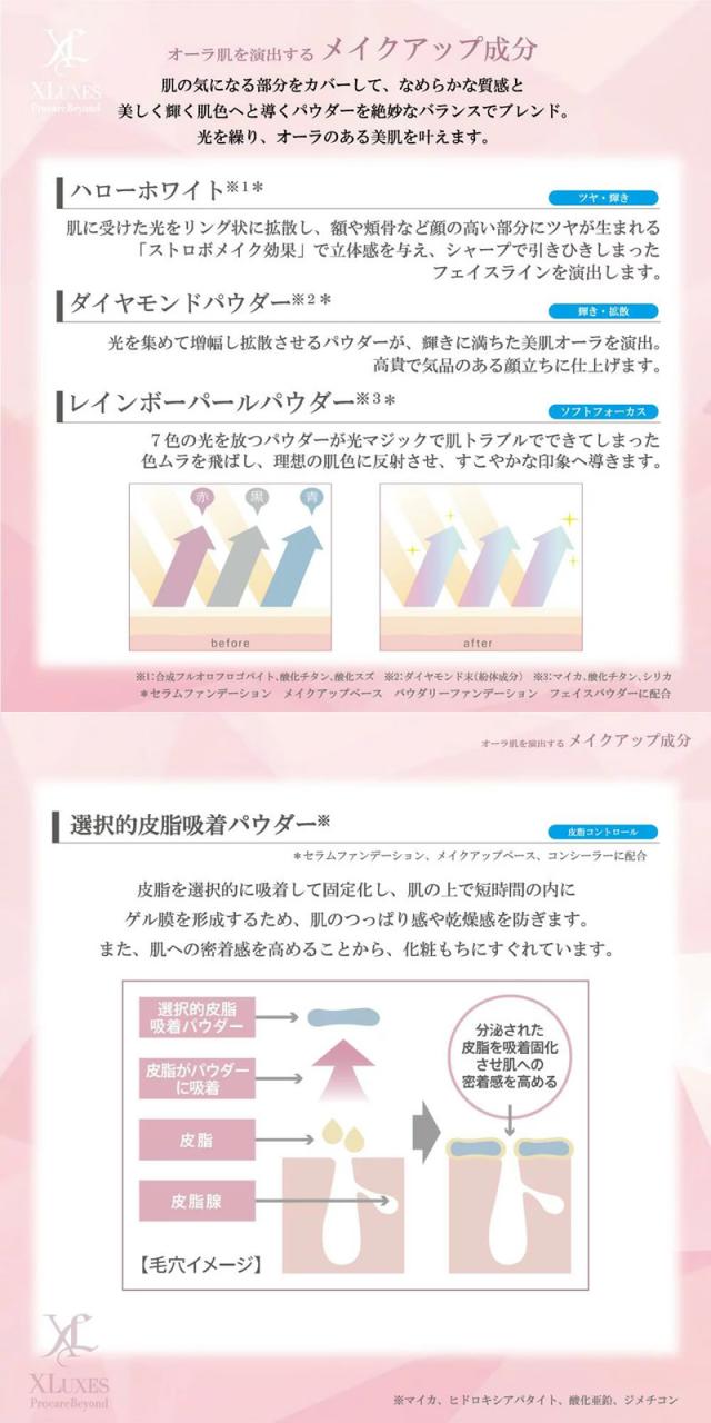 ※2 年齢に応じたスキンケアヒト幹細胞培養液(※1)配合のエイジングケア(※2)用リキッドファンデーション。7色の偏光パールが肌に究極の立体感を与え、健康的な透明感とハリ・弾力のある若々しい印象を与えるメイクアップ効果と、一日中豊かなうるおいを持続し、使うほどにキメの整ったなめらかな肌に導くスキンケア効果を同時に叶えます。