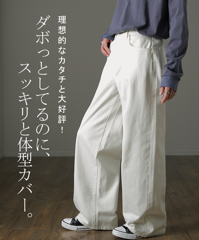 「ダボ × スッキリ」デニム パンツ レディース ストレートパンツ ジーンズ ボトムス ゆったり ワイドパンツ ボーイフレンドデニム ボーイフレンド ストレート ワイド ロング ズボン デニムパンツ ボトム 体型カバー 大きいサイズ 冬 秋 HUG.U 秋新作
