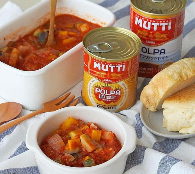 ●糖度が高く、酸味が少ない「ダッテリーニ」種のトマトを使用したトマト缶です。