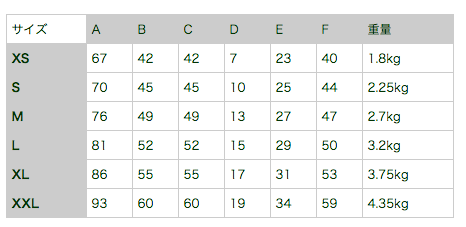 ステンレスメッシュシャツサイズ表 (単位:cm)