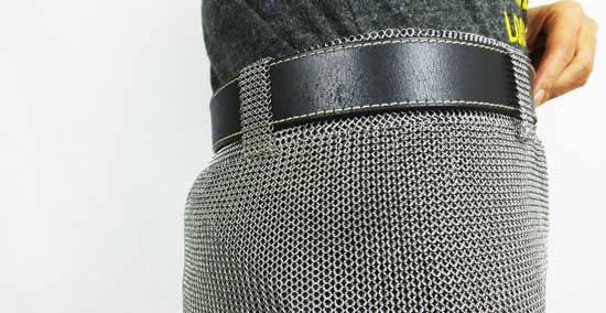 形状がズボンである為、前後のみを保護する一般的な防刃エプロンと比べても、その防護面積は広く、安全性はかなり高くなります。