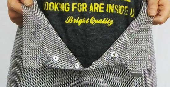 ●ステンレスメッシュシャツは、動力駆動のブレード、ナイフ、のこぎりや他の類似した道具類の力に耐えることができません。