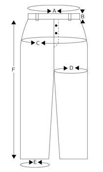 ステンレスメッシュズボンサイズ表 (単位:cm)