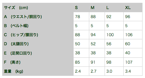 ピチピチの状態で着用しないのは分かっていますが、思い切り引っ張るとF/裾の値は表の中の( ) の値なります。