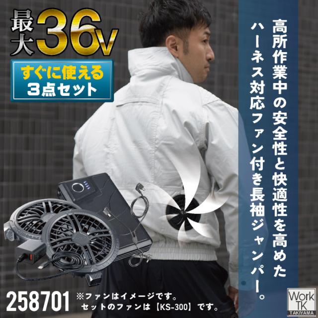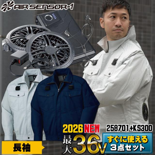 2026年新型 最大36V クロダルマ ファン・バッテリーフルセット ブルゾン 長袖 ファン付き作業着 作業服 春夏 空調作業服 空調ウェア 涼しい ファンユニット バッテリ 大きいサイズ メンズ レディース エアセンサー1 258701+KS-300 kd-258701-l3