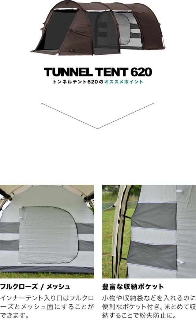 FIELDOOR テント 大型 ドームテント トンネルテント 620 260cm×620cm 2ルームテント 4人用 6人用 8人用 耐水 遮熱 UVカット シェルター キャンプテント メッシュ ツールームテント 2層構造 インナーテント付き 前室 日よけ キャンプ 送料無料