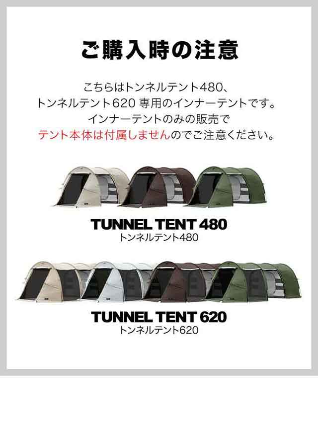 | 特記事項: ※こちらはトンネルテント480/トンネルテント620専用のインナーテントとなります。 |