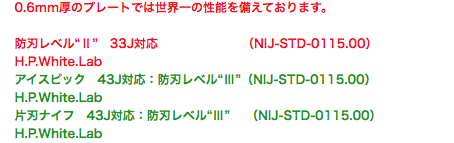防刃レベルはクラス最高の?+(NIJ-STD-0115.00)