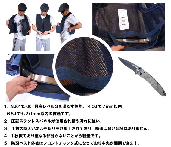 防刃レベルはクラス最高のレベル?(NIJ-STD-0115.00)