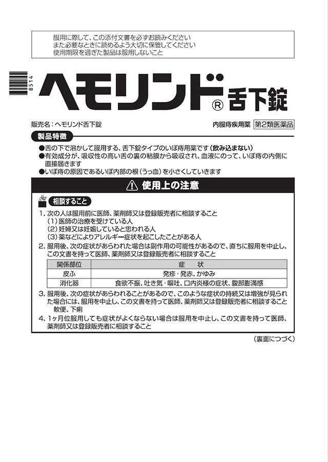 商品名 第2類医薬品 ヘモリンド 40錠 小林製薬 容量 40錠 JANコード 4987072053591 メーカー 小林製薬 カテゴリー 医療・介護・医薬品>医薬品>おしり関連薬>おしり関連薬【第一・二類医薬品(指定第二医薬品含む)】 効果・効能 内痔核,外痔核の症状の緩解 用法・用量 次の量を空腹時に舌下間で服用してください
