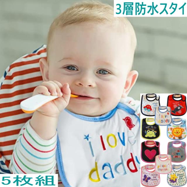 よだれかけ スタイ 3層5枚組 防水 ベビー ベビー キッズ ビブ お食事エプロン マジックテープタイプ 男の子 女の子 おしゃれ コットン コットン オシャレ お出かけ 通気性 吸収性 大きめ