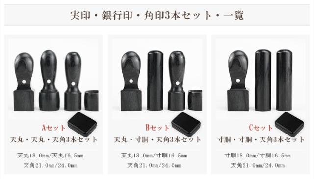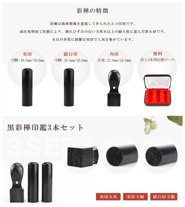 木質 会社 法人印鑑【黒彩樺3本セット 実印[寸胴]18.0mm+銀行印[寸胴]16.5mm+角印[天角]21.0mm/24mm 高級印鑑ケース付】宅配便発送