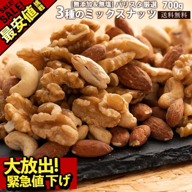 ナッツ ミックスナッツ 700g 愛すべきナッツ バリスタ厳選 3種のミックスナッツ 無塩 無添加 [ 生クルミ カシュ—ナッツ アーモンド ]