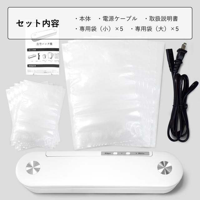 | ・本体 ・電源ケーブル ・専用袋(小)×5枚 ・専用袋(大)×5枚 ・取扱説明書 |