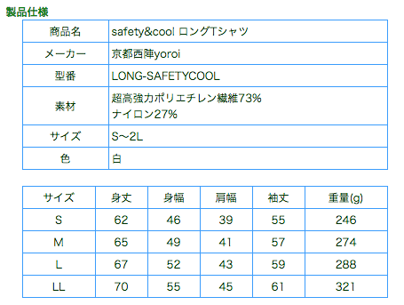 冷感生地を使用した夏場でも着やすい 耐刃性・耐摩耗性ロングTシャツ!!
