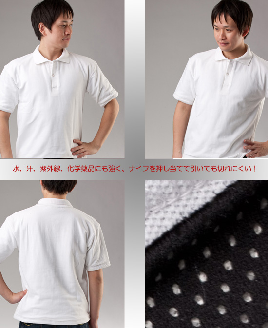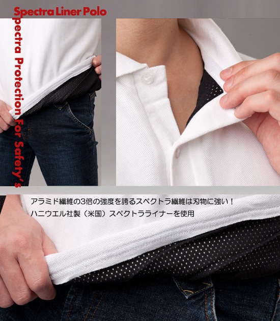 アーマージャパン【防刃スペクトラポロシャツ】 ホワイト 切創耐性 ナイフ対応 切創耐性 護身用品 防犯用品