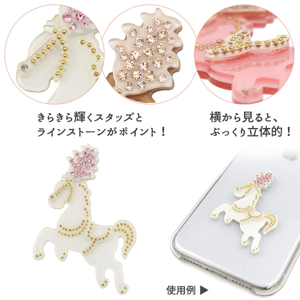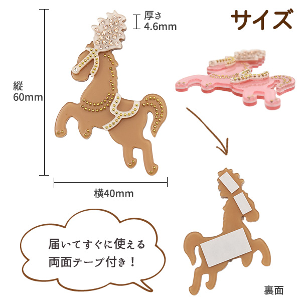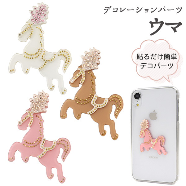 デコパーツ ウマ 両面テープ付き ラインストーン うま 馬 DIY用 デコ素材 オリジナル スマホケース 茶 白 桃 デコレーションパーツ 手作り 自作 素材