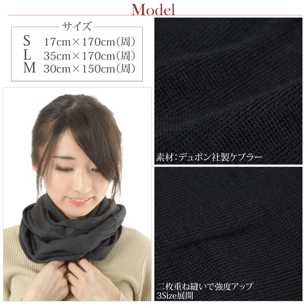 ブラックケブラー スヌード Sサイズ 防犯 護身 防刃 男女兼用 軽量 コンパクト 当店オリジナル スヌード 黒 防寒