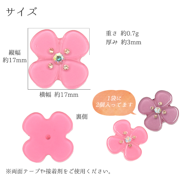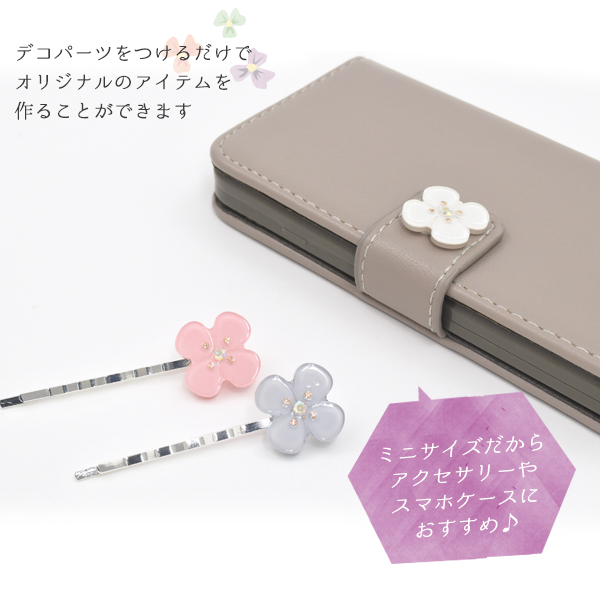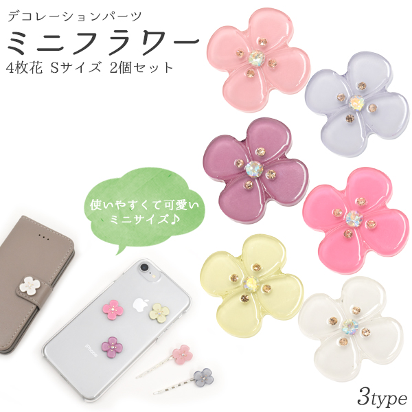デコパーツ ミニフラワー 4枚花 Sサイズ 2個セット ラインストーン付き DIY素材 デコレーションパーツ 手作り 自作 素材