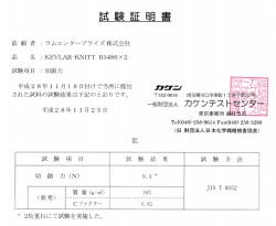 切創力/1枚:5.5N (JIS T 8052) カケンテストセンター