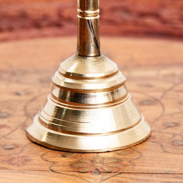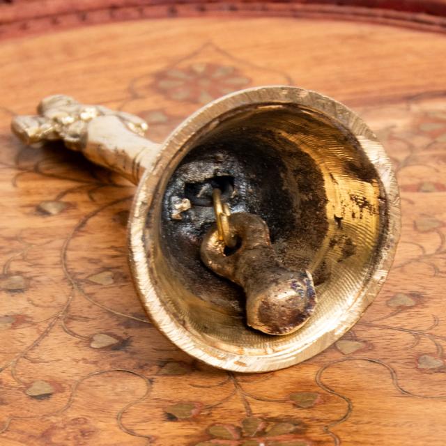 インドバラナシで祭礼用として使用されているハンドベル。真鍮を型に入れて削りだした、素朴な風合いがインドらしい一品です。音色は澄んでいて涼やかな感じ。玄関の呼び鈴として最適かもしれません■試奏動画