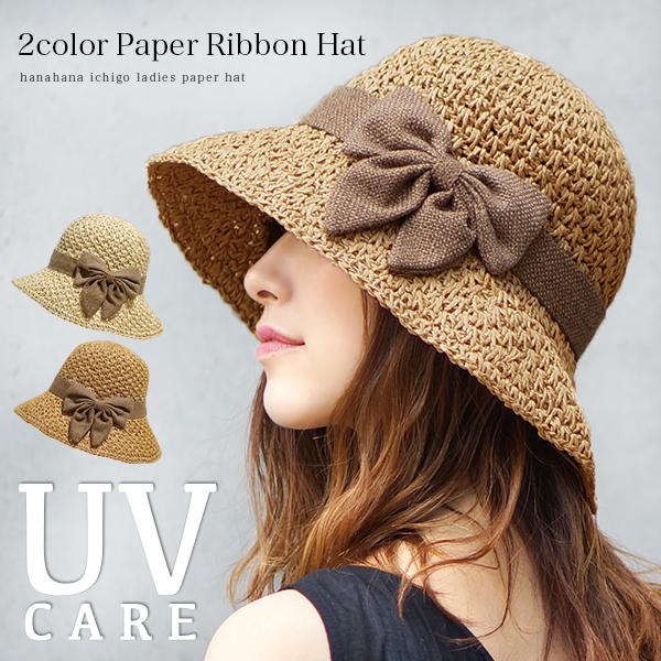帽子 レディース ハット 春夏 メール便送料無料 紫外線対策 UVケア uv対策 日よけ リボン ペーパー100% シンプル おしゃれ 外出 かわいい 上品 女性 つば広 サイズ調整 調節可能 ママ 持ち運び ミセス プレゼント【2color Paper Ribbon Hat】