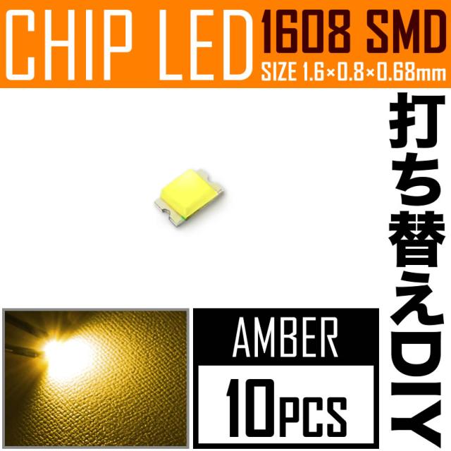 LEDチップ SMD 1608 (インチ表記0603) アンバー 10個 打ち替え 打ち換え DIY 自作 エアコンパネル メーターパネル スイッチ