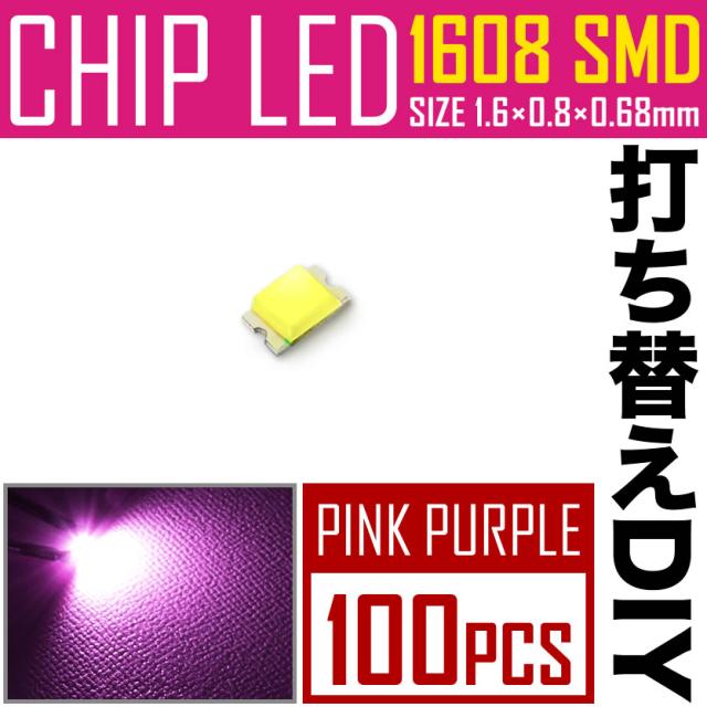 LEDチップ SMD 1608 (インチ表記0603) ピンク パープル 100個 打ち替え 打ち換え DIY 自作 エアコンパネル メーターパネル スイッチ
