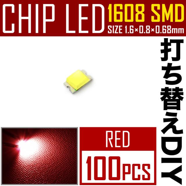 LEDチップ SMD 1608 (インチ表記0603) レッド 赤発光 100個 打ち替え 打ち換え DIY 自作 エアコンパネル メーターパネル スイッチ