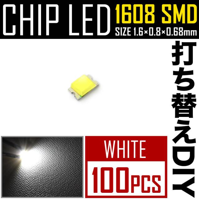 LEDチップ SMD 1608 (インチ表記0603) ホワイト 白発光 100個 打ち替え 打ち換え DIY 自作 エアコンパネル メーターパネル スイッチ