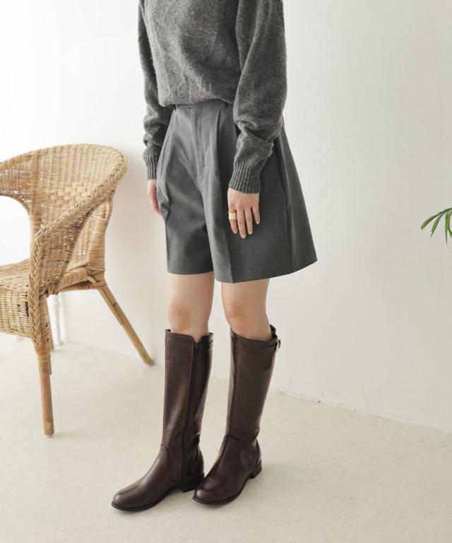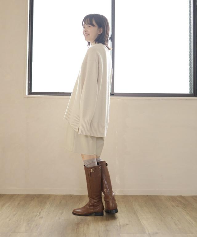 すとんと真っすぐに落ちるシルエットは足のラインを拾わないのでロングブーツを履くとふくらはぎに余裕がなくなりがちな方や足がむくんでくる夕方でもすっきり履いて頂けます。
