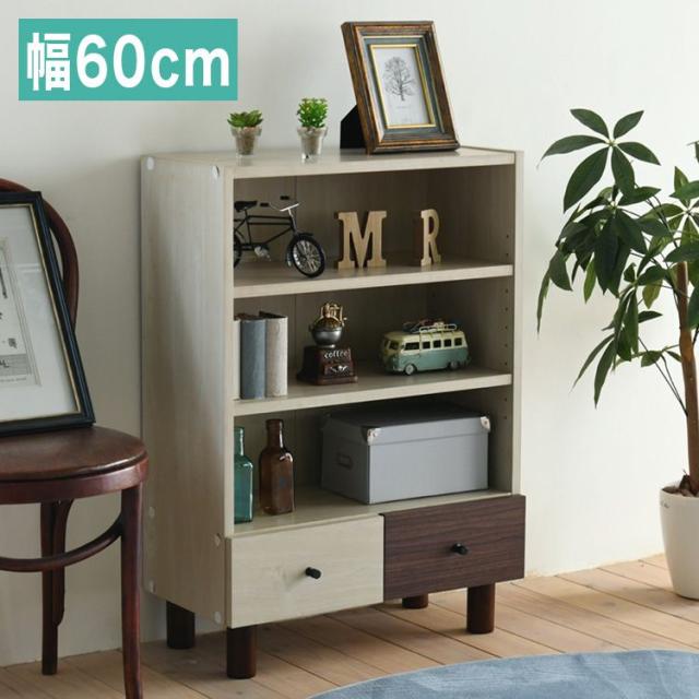 キャビネット 幅60 高さ85 奥行30 ツートン シェルフ 棚 引き出し 扉付き チェスト ローチェスト ローボード リビングボード 飾り棚 収納棚 北欧(代引不可)【送料無料】