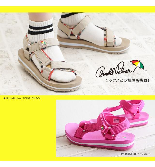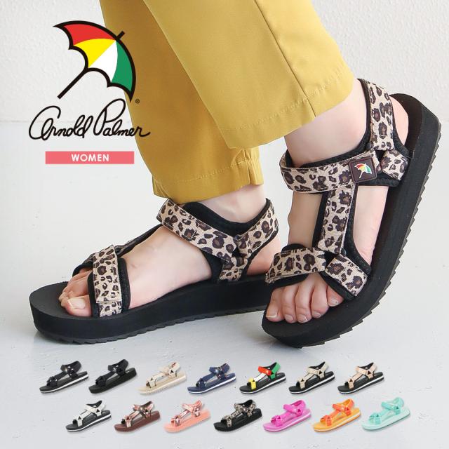 アーノルドパーマー サンダル レディース 歩きやすい ストラップ スポーツサンダル レディース スポーツ シンプル ジュニア 女の子 スポサン ブラック 黒 ピンク ベージュ ネイビー チェック ヒョウ柄 ミントグリーン オレンジ 5408