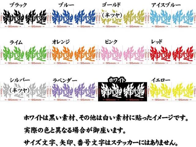 バイク ヘルメット 車 かっこいい ステッカー 神速 ( Fire ファイヤー 炎 ) 左右セット 2 カッティングステッカー 全12色 走り屋 ヤンキー 峠 湾岸 おもしろ タンク 最強 ステッカー 防水 耐水 アウトドア デカール 転写シール 70mmX95mm (MJ)