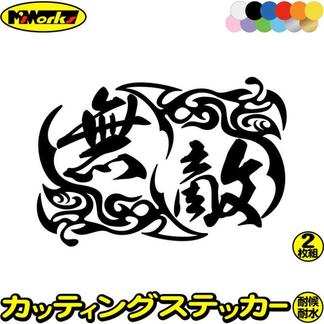 車ステッカー カーステッカー 車用 カー用品 無敵 (2枚1セット)3 カッティングステッカー 全12色 走り屋 ヤンキー 峠 湾岸 タンク おもしろ 漢字 イキリ 文字 無敵 ステッカー 防水 耐水 アウトドア デカール 転写シール 95mmX140mm (MJ)