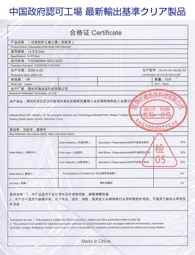 子ども用使い捨てマスク(10枚入り)