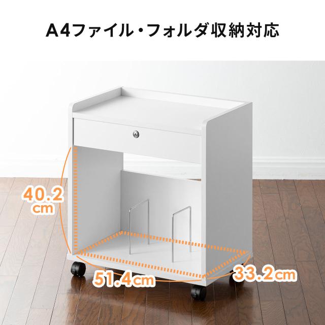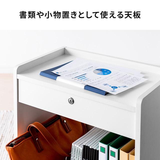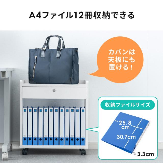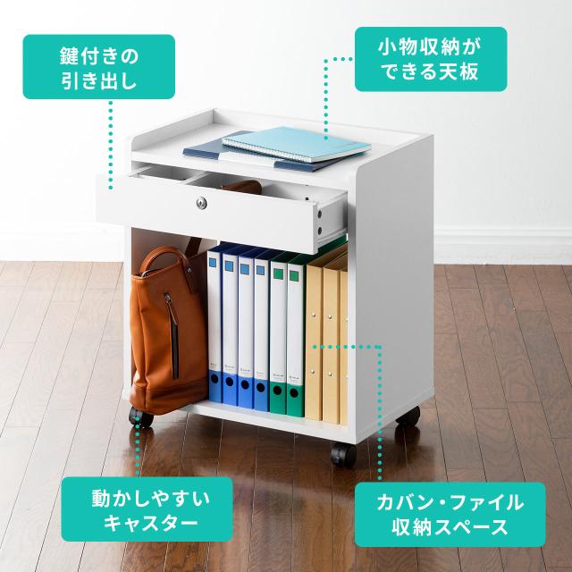 ファイルワゴン デスクキャビネット A4収納 引き出し付き 鍵付き キャスター付[100-WG015W]